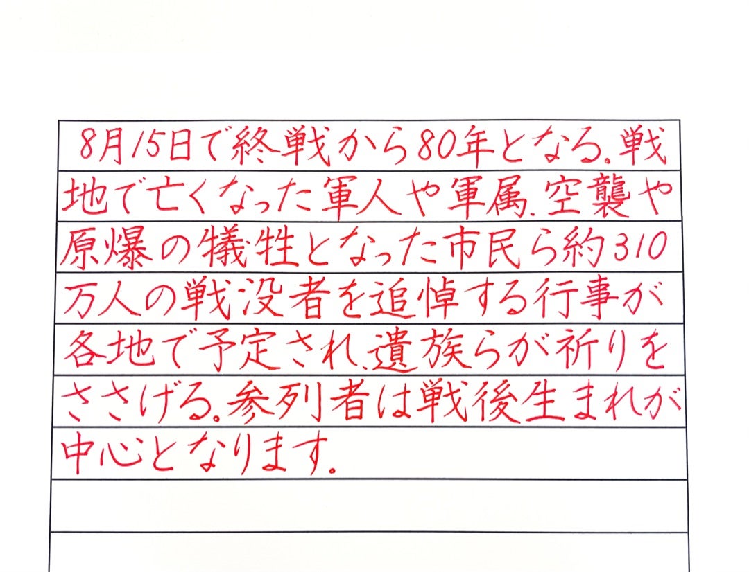 大人になって今さら!?ではなく今だからこそ学べるペン字教室(ペン字コース8月お手本/横書き)